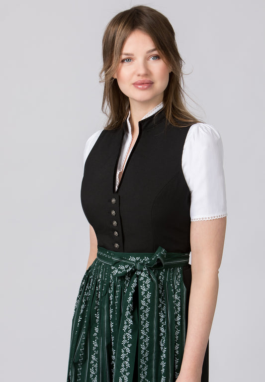Lovely Black dirndls for events, festivals and restaurant use. These are lovely with jacquard materials, buttons and chains. Pick an apron in your favorite color, or pick two and change the look of the Black Bavarian dirndl. Add matching colored jewelry - ribbons and shoes to create multiple outfits.