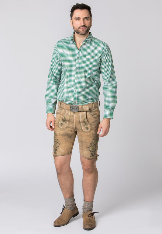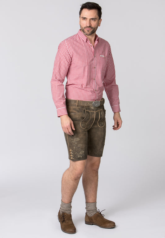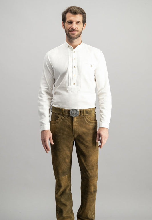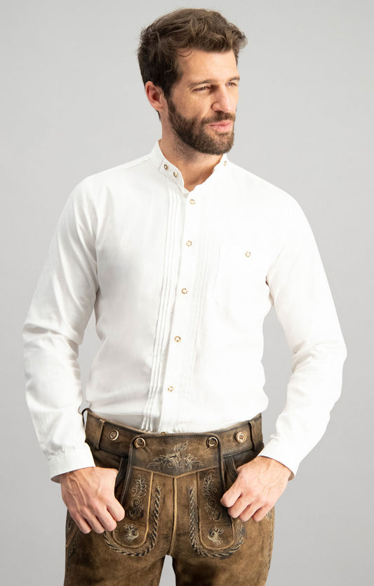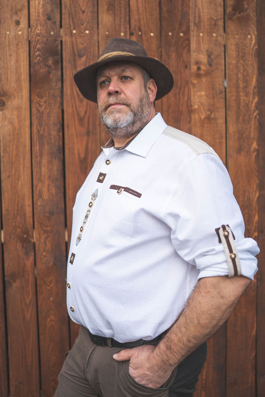 Traditional and Authentic Men's Shirts and for Oktoberfest and all year round, from Germany. These men's shirts are the perfect Bavarian lederhosen shirt, but also work well with jeans or even more formal clothing. Matched with a pair of wool slacks, and a vest, this is the perfect compliment in your wardrobe. Check descriptions for "comfort fit", a more generous fit, and "modern fit" a sleeker, closer cut.
